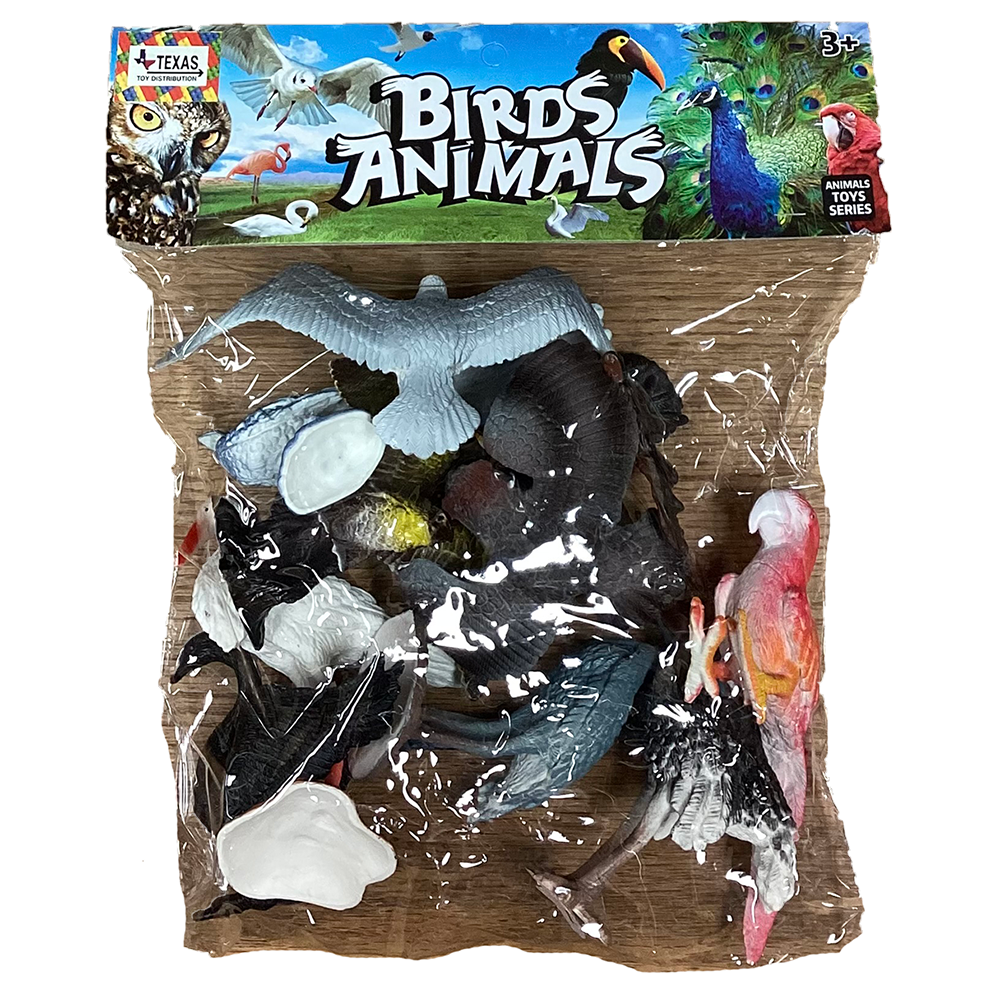 10 Assorted Bird Animal Figurines in Peggable Bag