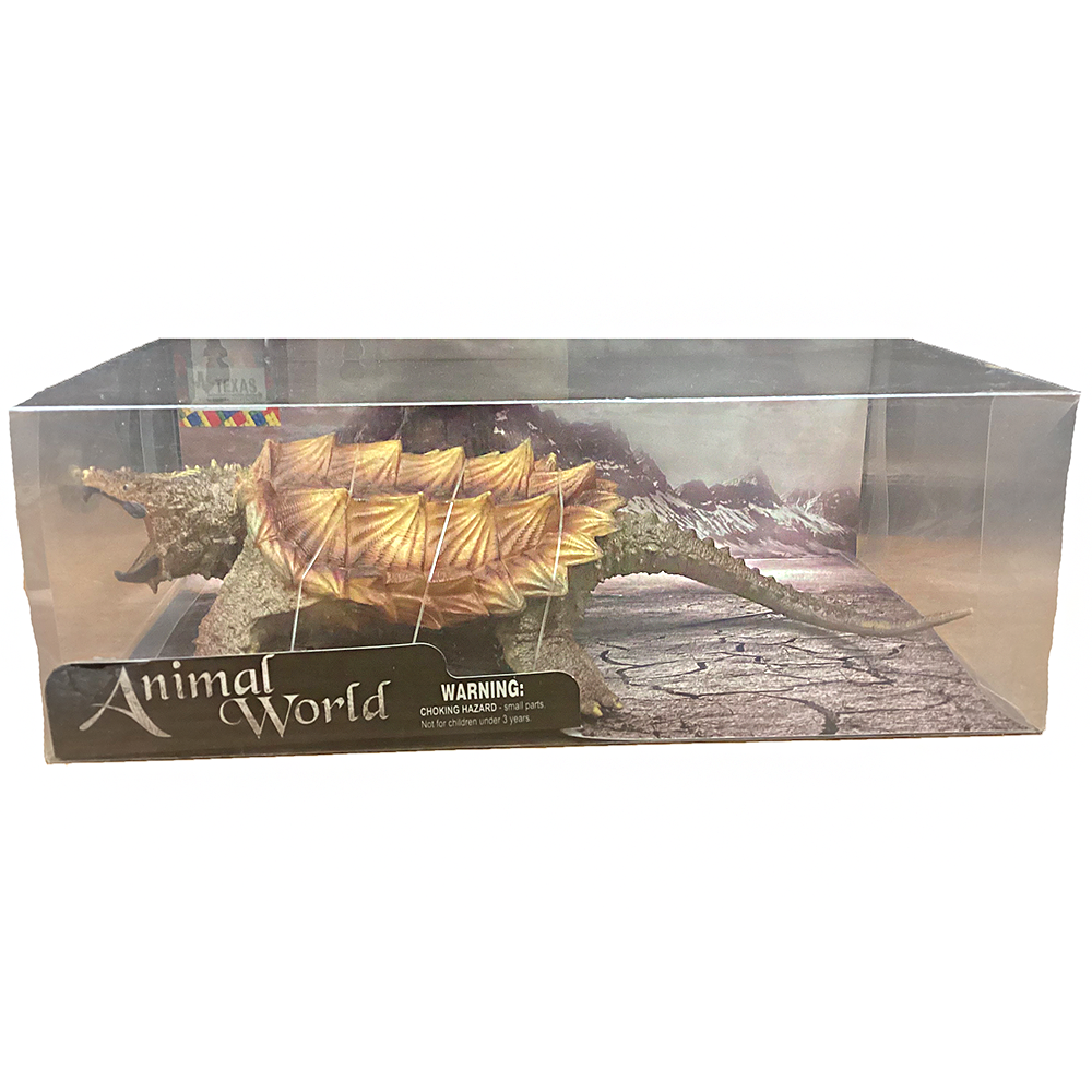 This large 11-inch long snapping turtle figurine is as close as you can get to realistic... without any snapping! This soft rubber reptile animal figurine is highly detailed and comes in a clear retail box as pictured.