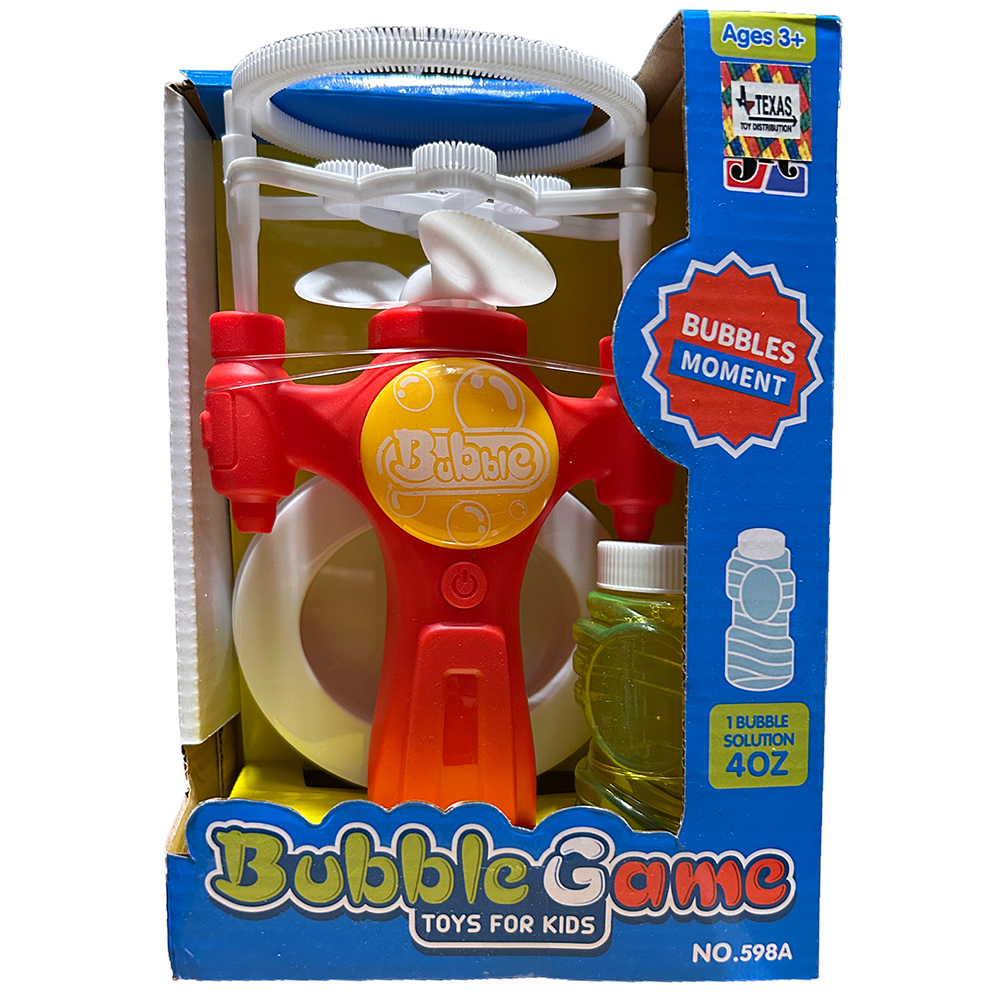 This bubble fan is perfect for summer play! Comes in a window box with a 4oz bottle of bubble solution.