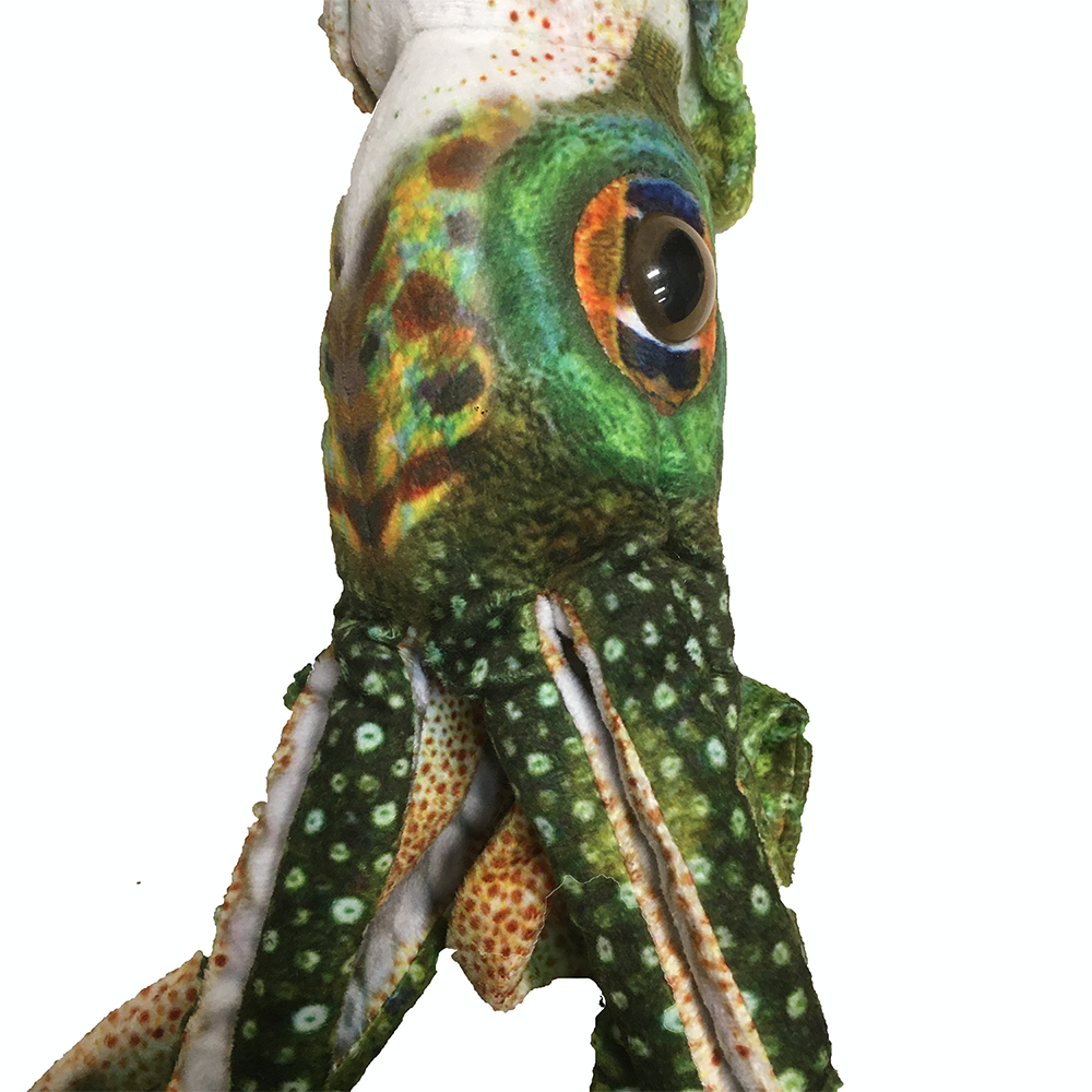 This brightly colored squid is an adorable aquatic addition to our new plush line! This squid had six tentacles and two longer feeding tentacles, and a large eye on either side that gives it personality.
