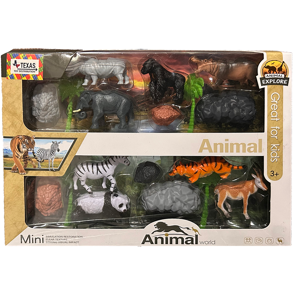 This assortment of jungle safari animal figurines are displayed in a beautiful window box. Perfect for zoo gift shops and animal attractions!