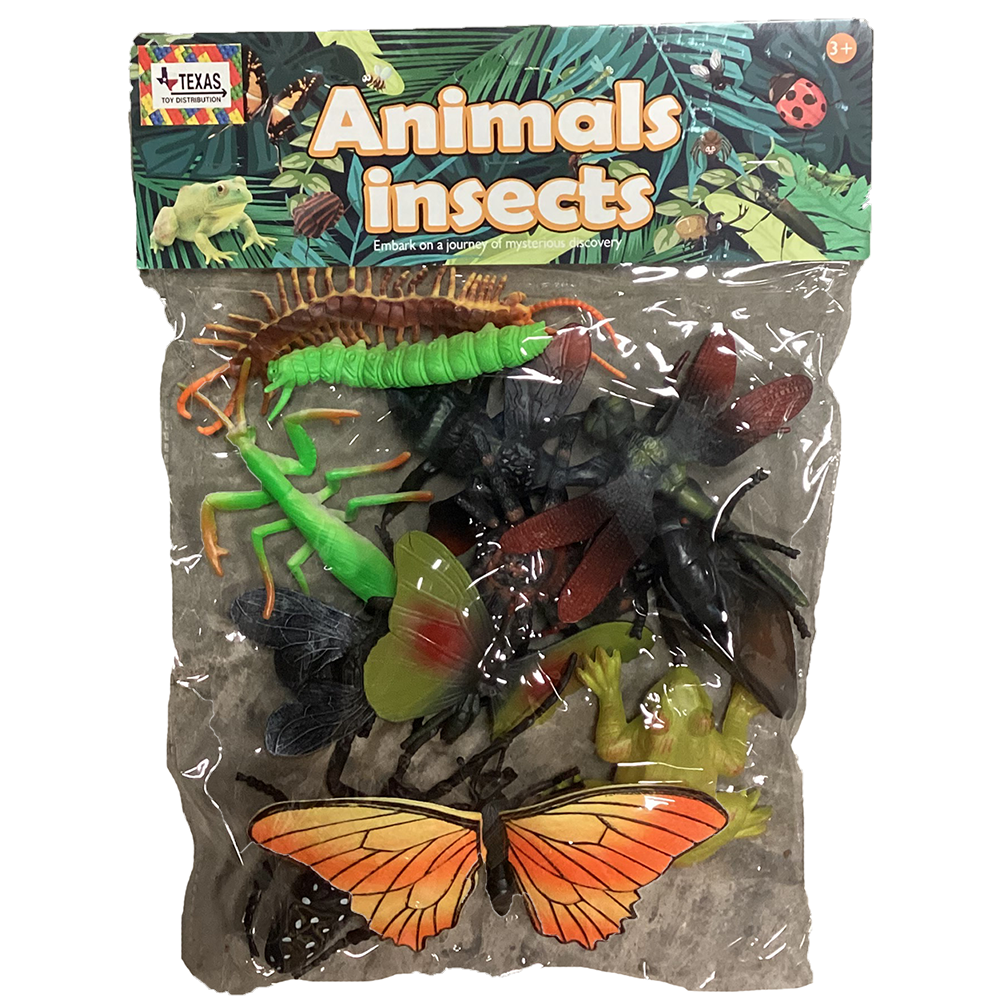 Large Insect Figurines, 7" Bugs in Peggable Bag