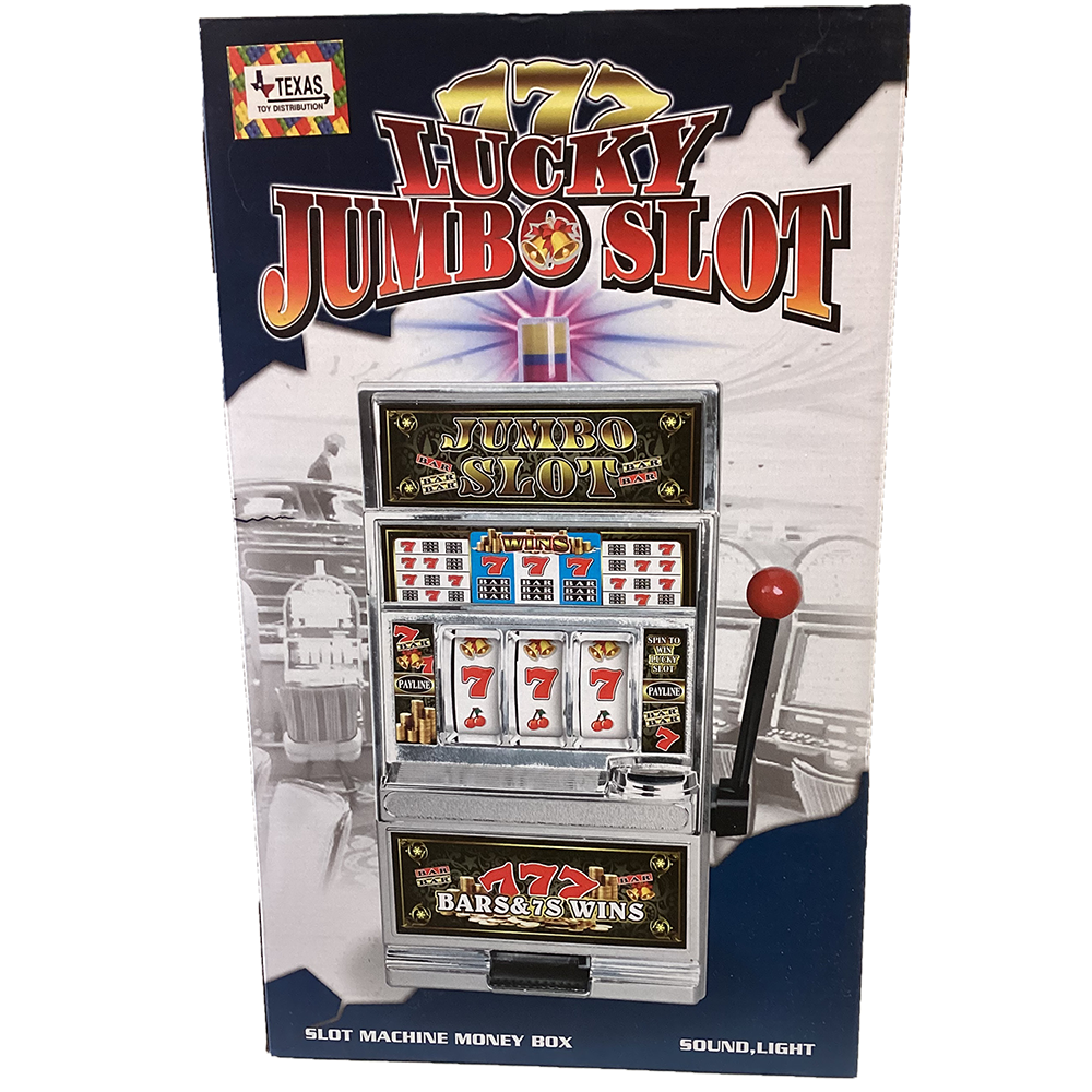 LIGHTS AND SOUND : Jumbo slot machine comes with flashing lights and sounds when you play and hit the jackpot! Test your luck to see if you can hit the jackpot or simply use it as a coinbank to store all your coins.