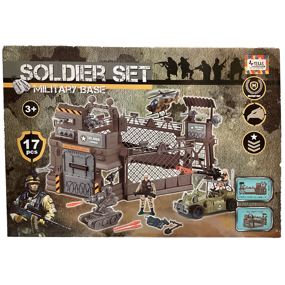 This military base play set includes a wide array of accessories to make defending your base FUN! Comes in themed retail box as pictured.
