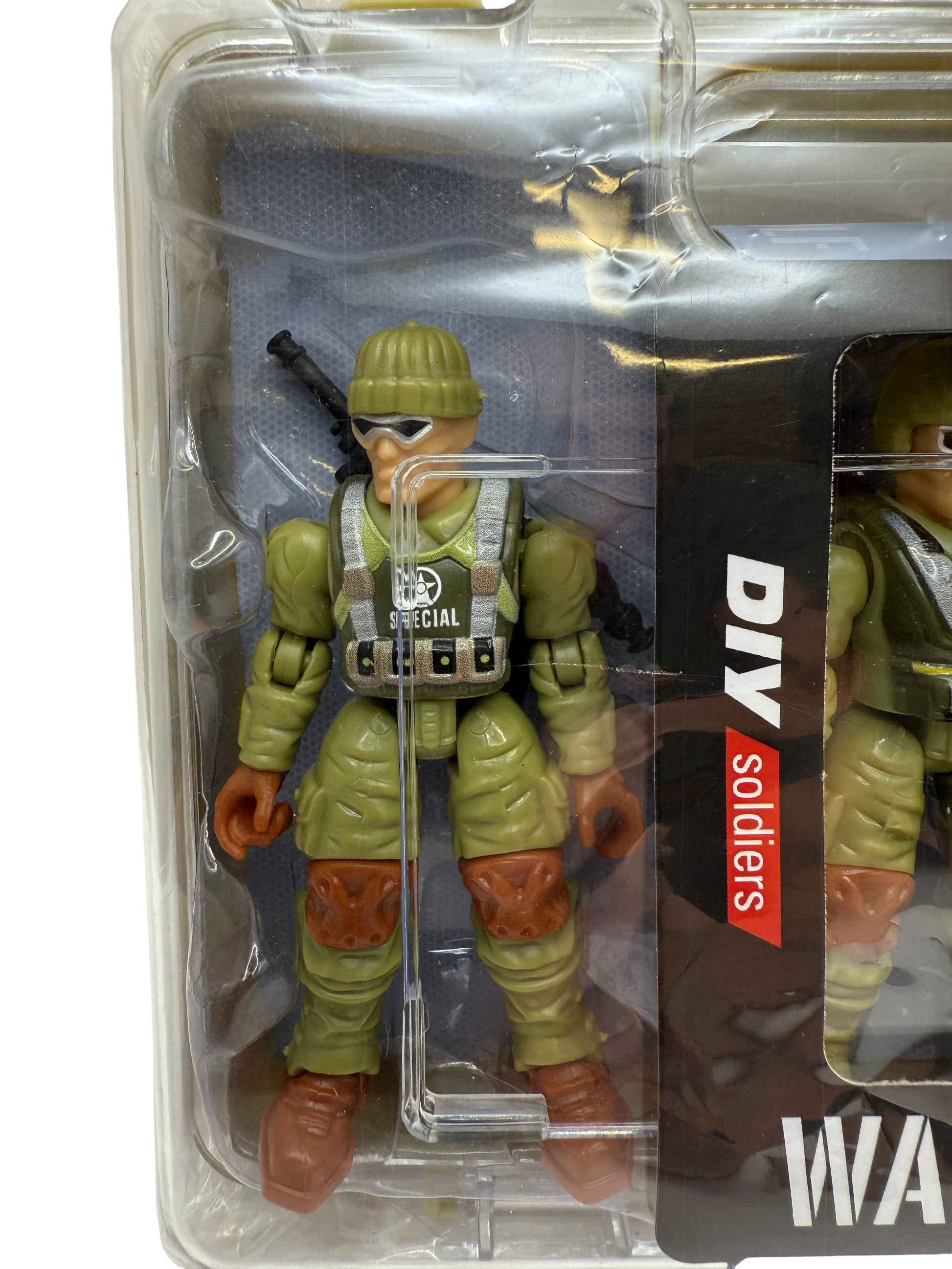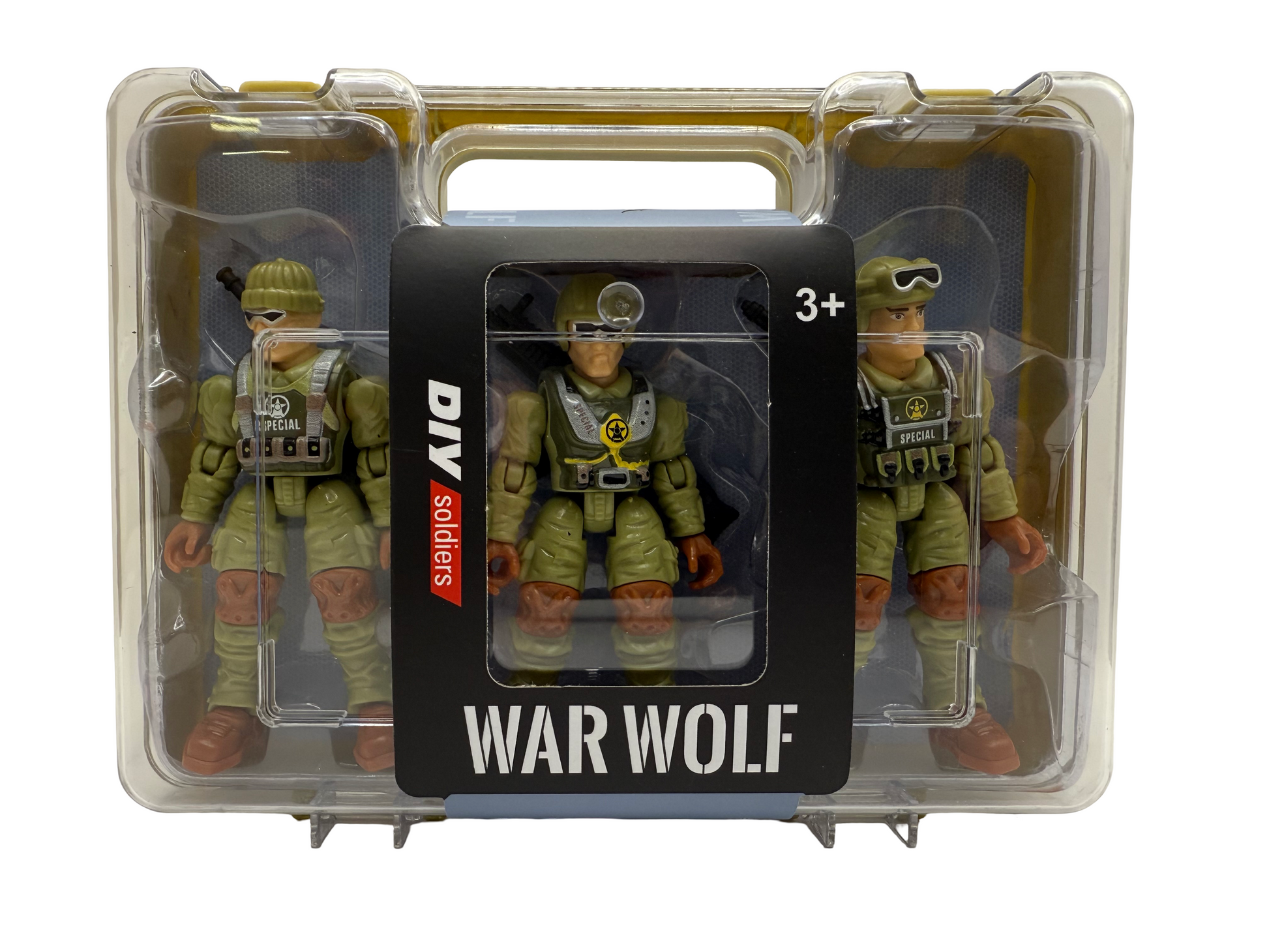 This set comes with three articulated military action figures, each approximately 4” tall. These soldiers have plastic weapons and come in their own carrying box. Recommended for ages 3+